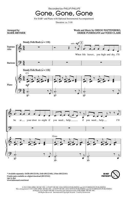 Gone Gone Gone Pop Choral Series Sab Phillip Phillips