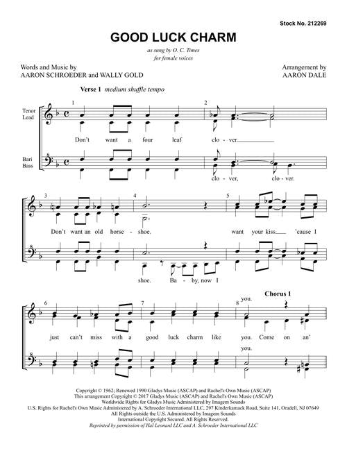 Good Luck Charm Ssaa A Cappella Arranger Aaron Dale