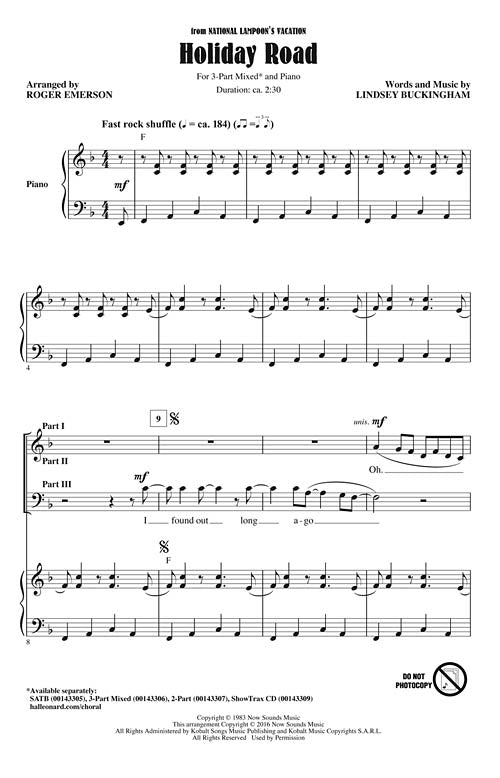Holiday Road Pop Choral Series 3 Part Mixed Lindsey Buckingham