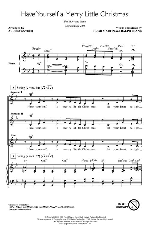 Have Yourself A Merry Little Christmas Discovery Choral Ssa Hugh