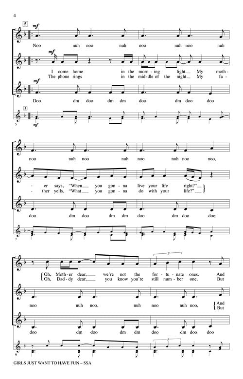 Girls Just Want To Have Fun Pop Choral Series Ssa A Cappella Cynd