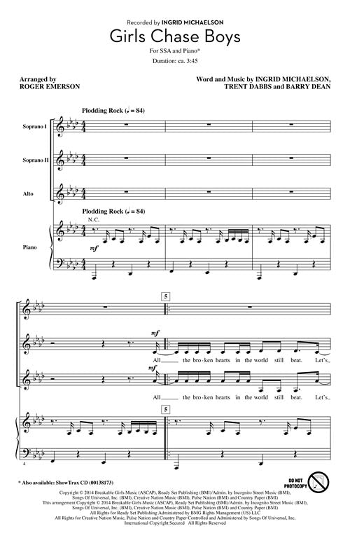 Girls Chase Boys Pop Choral Series Ssa Ingrid Michaelson