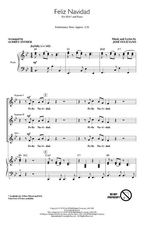 Feliz Navidad Discovery Choral Ssa Jose Feliciano