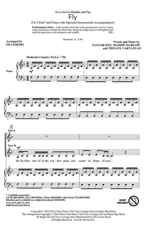 Fly Pop Choral Series 2 Part Arranger Ed Lojeski