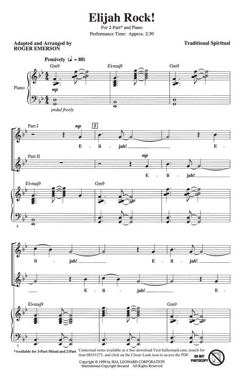 Elijah Rock Discovery Choral 2 Part Arranger Roger Emerson