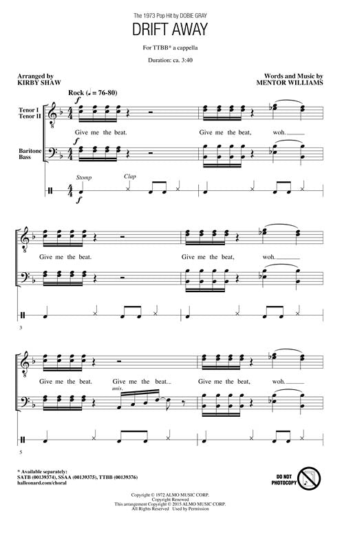 Drift Away Pop Choral Series Ttbb A Cappella Dobie Gray