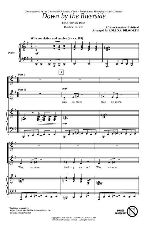 Down By The Riverside Discovery Choral 2 Part Arranger Audrey Sn