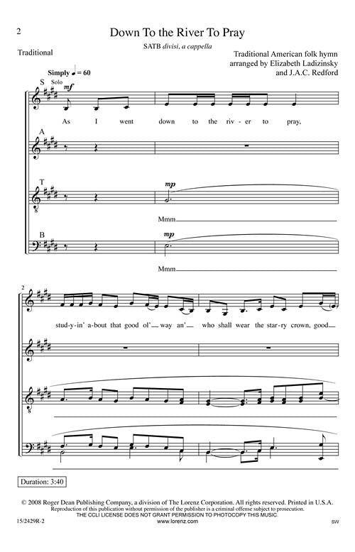 Down To The River To Pray Satb Arranger J A C Redford