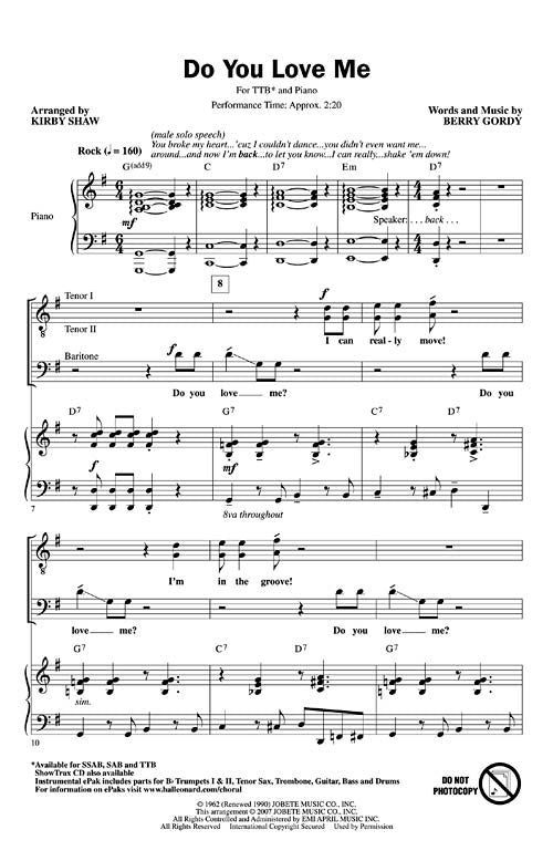 Do You Love Me Ttb Pop Choral Series Arranger Kirby Shaw