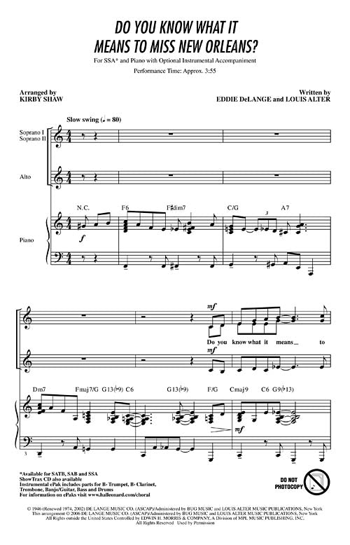 Do You Know What It Means To Miss New Orleans Ssa Arranger Kirby
