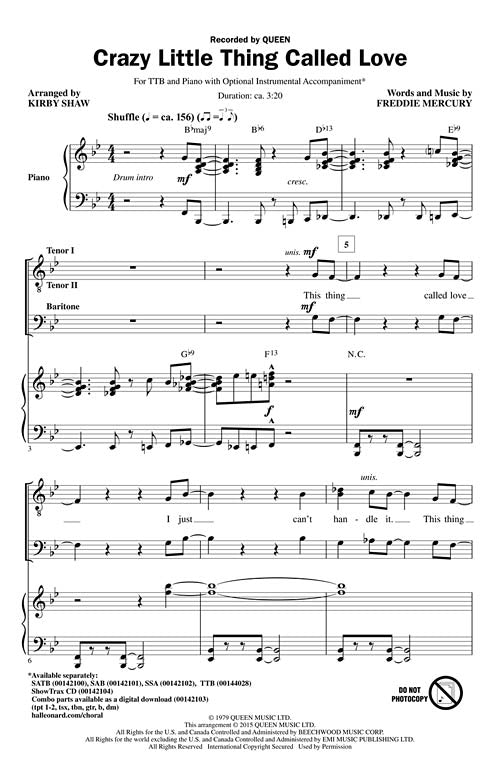Crazy Little Thing Called Love Pop Choral Series Ttb Queen