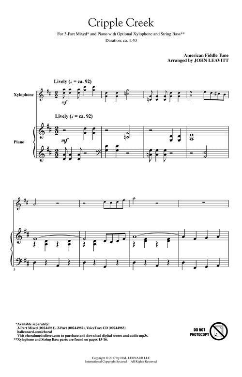 Cripple Creek Discovery Choral 3 Part Mixed Arranger John Leavit