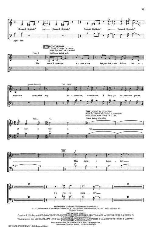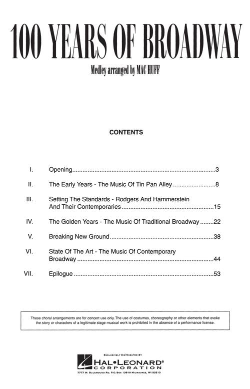 This Title Comes In Quantities Of Five (5) Copies(1 Order=5 Copies) 100 Years of Broadway (Medley) Composer: Mac Huff (arr. Mac Huff) Publisher: Category: Choral Series: Broadway Choral Format: Voicing: SAB Singer Celebrate the history of...Regular price $62.99 -
