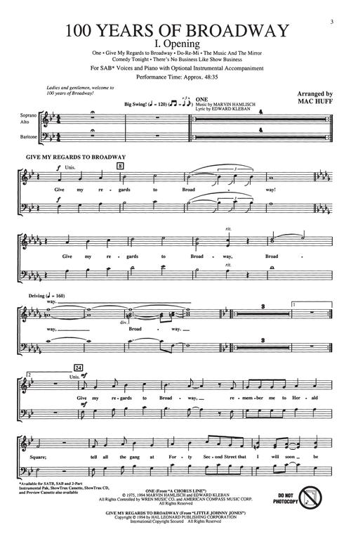 100 Years Of Broadway Medley Sab Singer Arranger Mac Huff