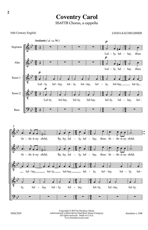 Coventry Carol Hinshaw Music Ssattb Arranger Linda Kachelmeier