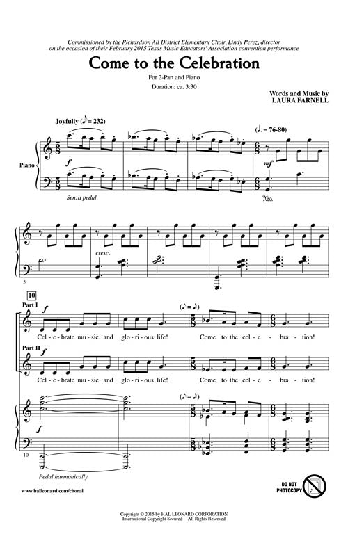 Come To The Celebration Festival Choral 2 Part Laura Farnell