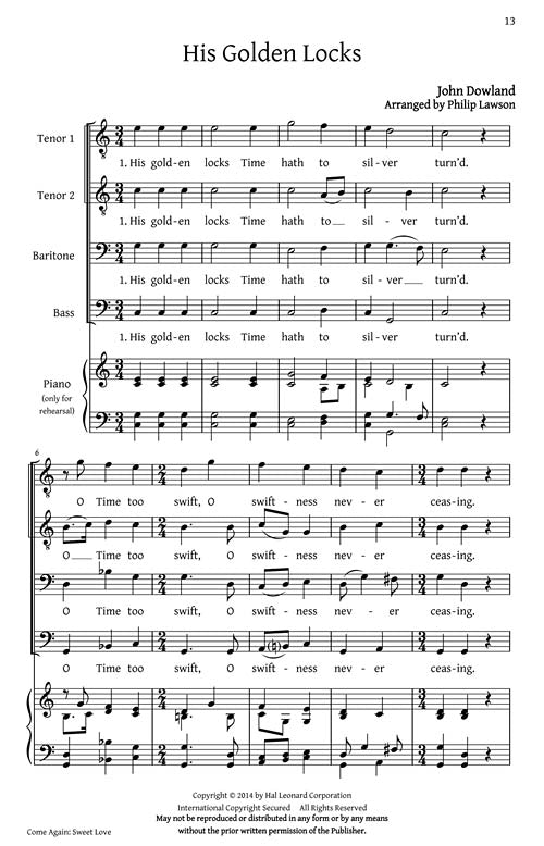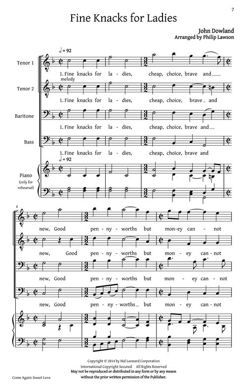 Come Again Sweet Love De Haske Choral Music Ttbb Collection John