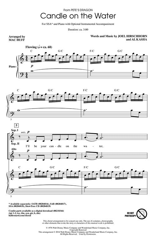 Candle On The Water Pop Choral Series Ssa Al Kasha