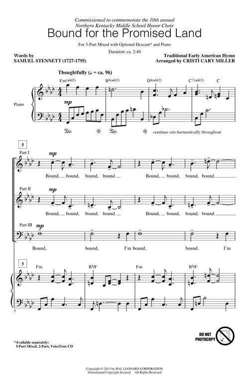 Bound For The Promised Land Discovery Choral 3 Part Mixed Arrange