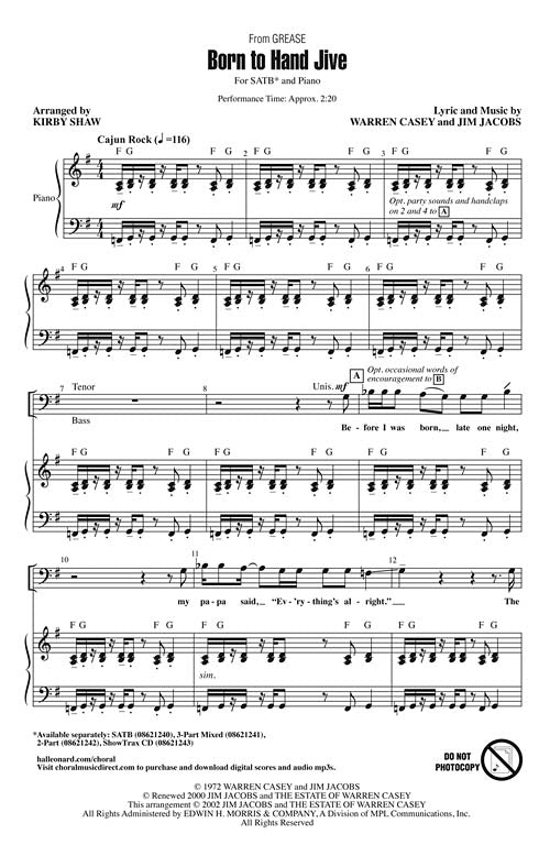 Born To Hand Jive From Grease Satb Jim Jacobs