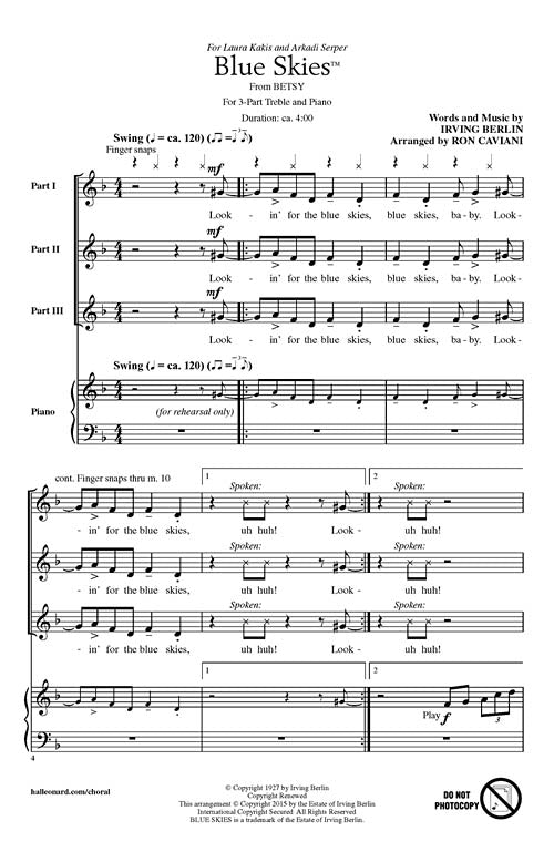 Blue Skies Henry Leck Creating Artistry 3 Part Treble Irving Berl