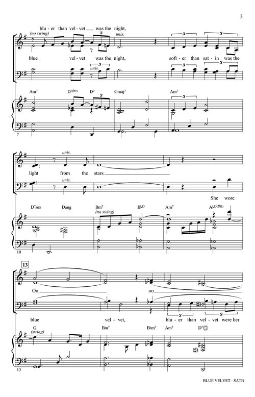Blue Velvet Pop Choral Series Satb Bernie Wayne