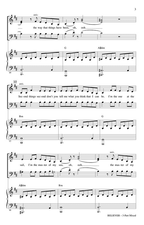 Believer Pop Choral Series 3 Part Mixed Imagine Dragons
