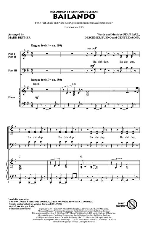 Bailando Pop Choral Series 3 Part Enrique Iglesias