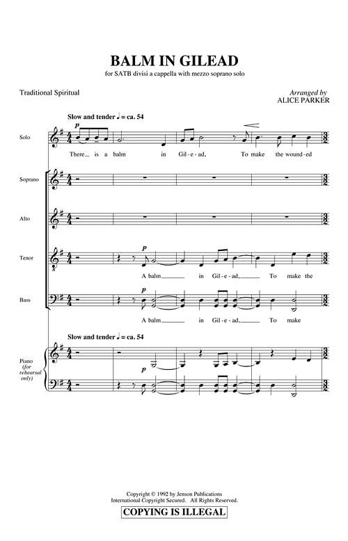 Balm In Gilead Satb With Solo Arranger Alice Parker