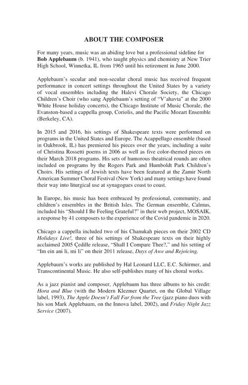 Composer: Robert Applebaum Condition: New Item# 00388337 Authorized DealerRegular price $28.99 -