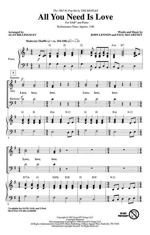 All You Need Is Love Sab Pop Choral Series The Beatles