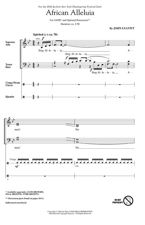 African Alleluia Festival Choral Satb John Leavitt
