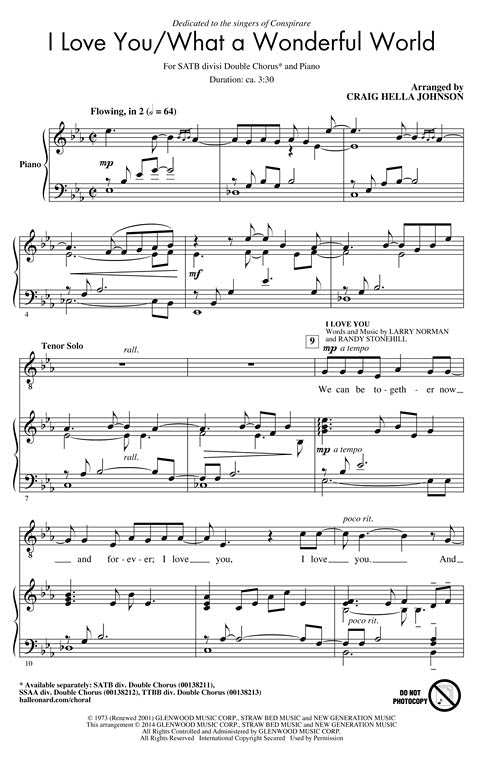 I Love You What A Wonderful World Voices Rising Double Choir Satb
