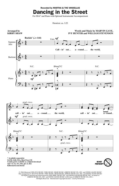 Dancing In The Street Ssa Pop Choral Series Martha The Vandella