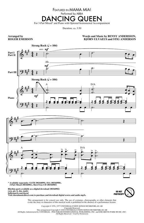 Dancing Queen 3 Part Mixed Pop Choral Series Abba