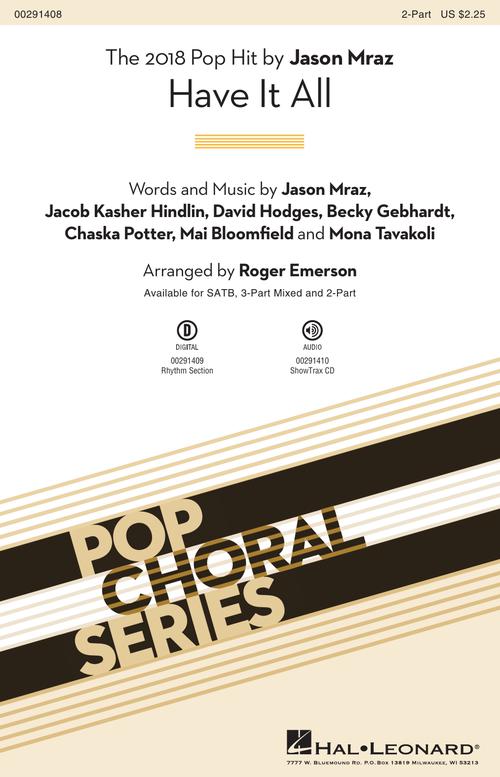 Have It AllPublisher: Hal LeonardCategory: ChoralSeries: Pop Choral SeriesFormat: OctavoThis Jason Mraz song provides a hopeful message, a blessing meant to be paid forward and shared. The happy up-beat style along with positive lyrics make this...Regular price $28.99 -