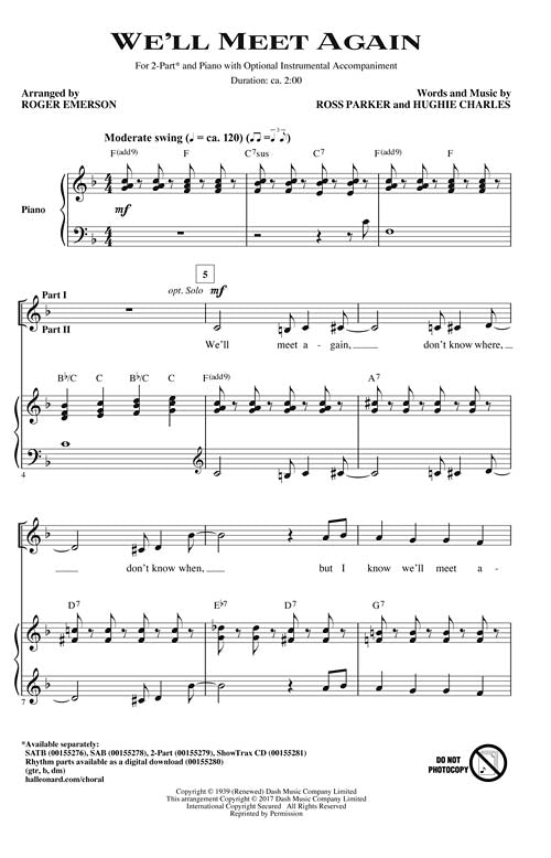 Well Meet Again Choral 2 Part Arranger Roger Emerson
