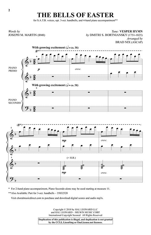 The Bells Of Easter Satb W Piano 4 Hands Arranger Brad Nix