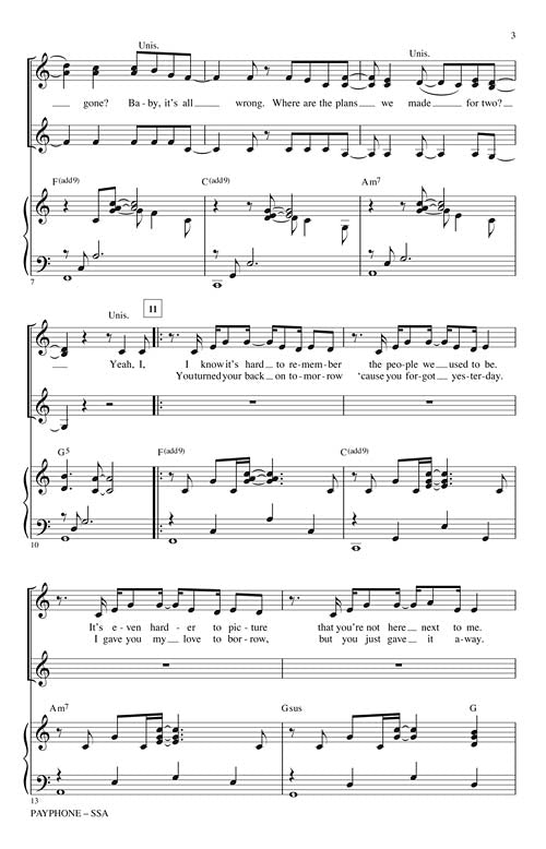 PayphoneSSAPublisher: Hal LeonardCategory: ChoralSeries: Pop Choral SeriesFormat: PaperbackThe instantaneous #1 hit from 2012 by Maroon 5 explores the emotions of heartbreak in this powerful single from their Overexposed album. This more acoustic and PG-rated version of...Regular price $23.99 -