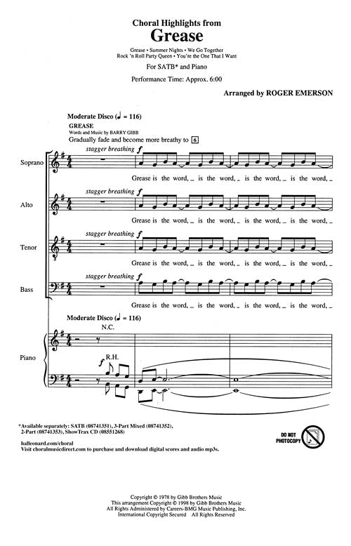Grease Choral Highlights Discovery Choral Satb Arranger Roger