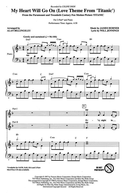 My Heart Will Go On From Titanic 2 Part Pop Choral Series Celin