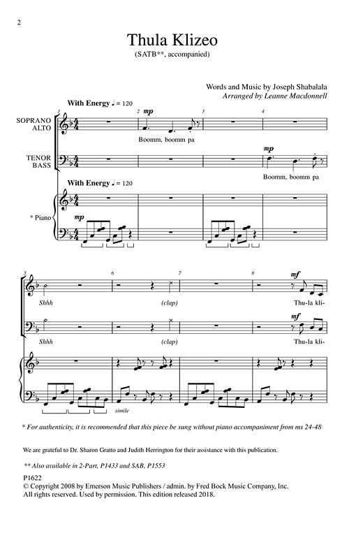 Thula Klizeo SATB Joseph Shabalala