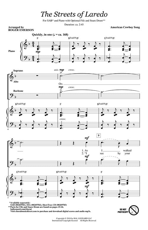 The Streets of LaredoPublisher: Hal LeonardCategory: ChoralSeries: Choral ExplorationFormat: OctavoThis novel treatment of the classic cowboy song is anything but the original. Completely reharmonized with extended phrases and a minor mode for the third verse will...Regular price $27.99 -
