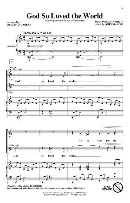God So Loved The World Brookfield Easter Choral Satb John Stainer
