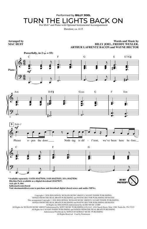 Turn the Lights Back OnPublisher: Hal LeonardCategory: ChoralSeries: Pop Choral SeriesFormat: OctavoBilly Joel fans have waited for the longest time for a new song from their favorite piano man! With this power ballad, the wait is...Regular price $29.99 -