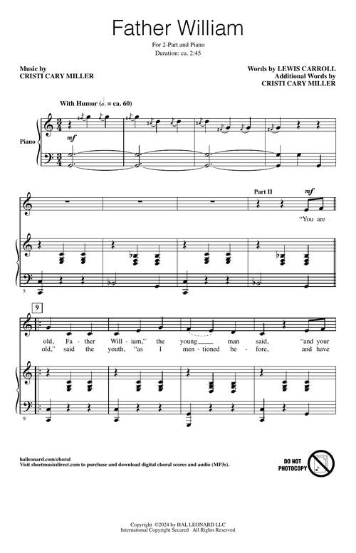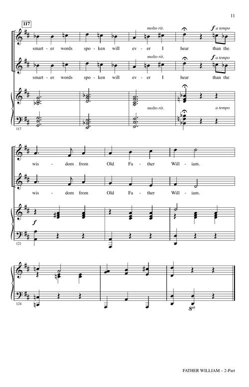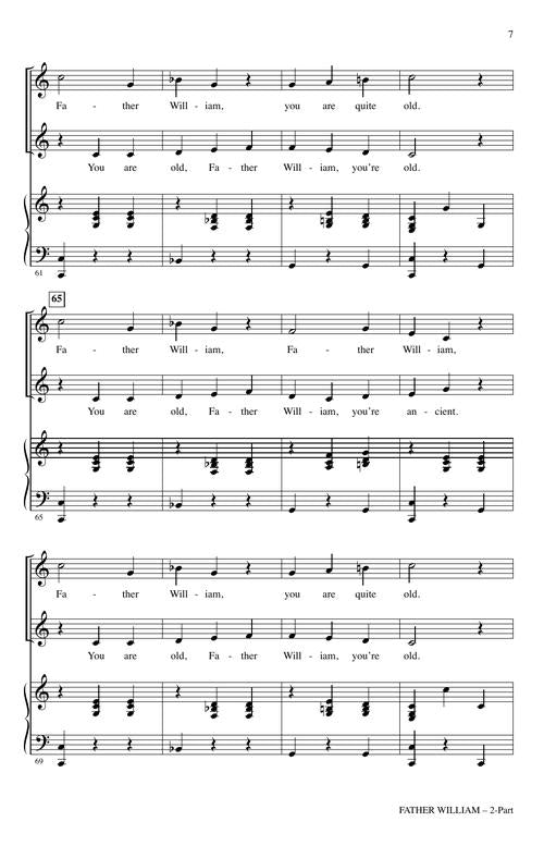 Father WilliamPublisher: Hal LeonardCategory: ChoralSeries: ChoralFormat: OctavoLewis Carroll's puzzlingly hilarious poem You Are Old, Father William (featured in The Adventures of Alice in Wonderland), set to a jaunty and slightly eccentric waltz tune by Cristi Cary...Regular price $28.99 -
