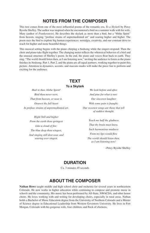 Blithe SpiritAndrea Ramsey Choral SeriesPublisher: Hal LeonardCategory: ChoralSeries: ChoralFormat: OctavoThis iconic poem uses a bird to explore big human experiences: nostalgia, creativity, and our constant drive to reach for higher and more beautiful things. The music...Regular price $27.99 -