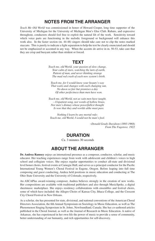 Teach Me, Old World TTBB a cappella Andrea Ramsey