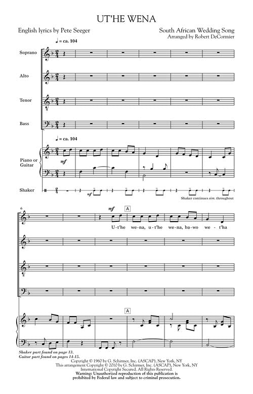 Ut'he Wena Choral SATB Arranger: Pete Seeger