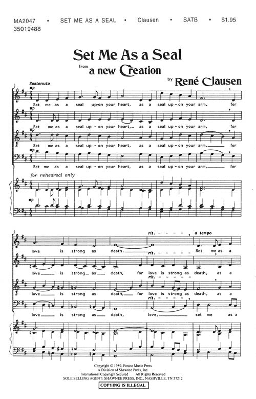 Set Me As A Seal From A New Creation Satb A Cappella Rene Clau